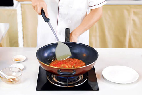 4.锅内放入适量油,油温烧至7成热,放入蒜末、剁椒炒香,倒入调好的酱汁煮至浓稠;