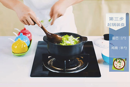 8.加入盐1勺、鸡精半勺、麻油2滴;