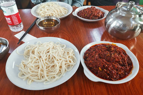 在乌鲁木齐,面馆是遍地都是,这家主要就是以拌面为主,味道很不错,跟新疆其他的面很不一样,他家的面Q弹爽口,很有韧劲,尤其是过油肉拌面,加入了牛肉洋葱,青椒,木耳等食材做成的浇头,味道浓香,油而不腻,非常好吃,是这家店的一大特色。