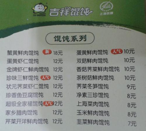 下面小编收集了部分吉祥馄饨的菜单价格以供大家参考,看得出它家的一份馄饨价格在12元上下,吉祥馄饨菜单价格表一览 点菜管理系统哪个好算不上贵。具体的实际消费还是得看个人喜好。