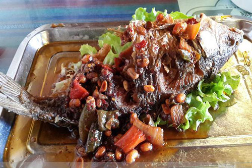 东巴烤鱼是丽江茶马古道上流行起来的,来到丽江怎么能不吃呢?东巴烤鱼是用鲤鱼制作,将鱼肉处理好之后加入各种腌料,腌制完成之后,放上架子烤制,然后再入锅里面炸一炸,这道美食口感脆嫩,鱼肉香而不腥,符合大众的口味,所以在丽江是很受欢迎的菜。