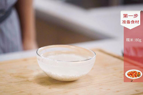 1.糯米洗净,在清水中浸泡30分钟;