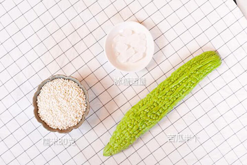 食材:糯米80克,苦瓜半个,冰糖;