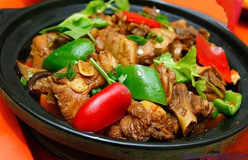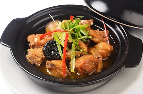 2、鸡肉炒好后,放入砂锅炖煮更好。