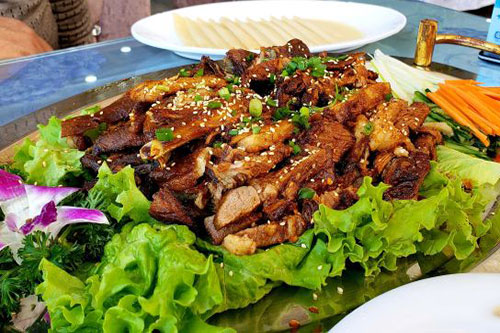 烤羊背原本是蒙古族人在喜庆的场合才会吃的一道美食,在蒙古族,他们认为,除了羊腿,肉就都在羊背上了,所以烤羊背也是一道大菜,银川特色美食小吃烤羊背选用了草原牧场上最肥美的白条羊背,食材好,然后用当归等三十余种中草药和天然调味品腌制24-36个小时,烤出来的羊背色美肉香、外焦内嫩。