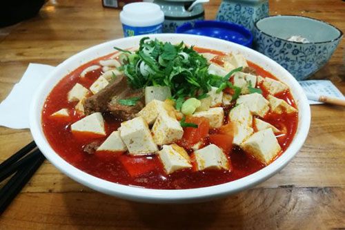 羊肉搓面在宁夏是很知名的面食,尤其是在银川地区,很多地方都有,羊肉搓面口感比较劲道,面精肉鲜,让人回味无穷。羊肉搓面有筷子般粗,下锅煮熟之后,再浇上用羊肉原汁、羊肉丁和新鲜蔬菜,汤浓味香,最后放辣椒红油调味。