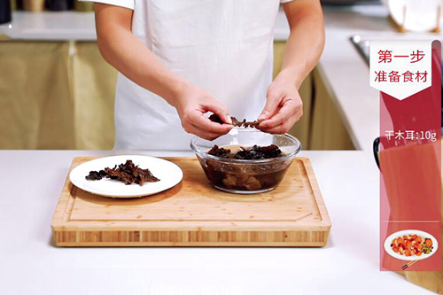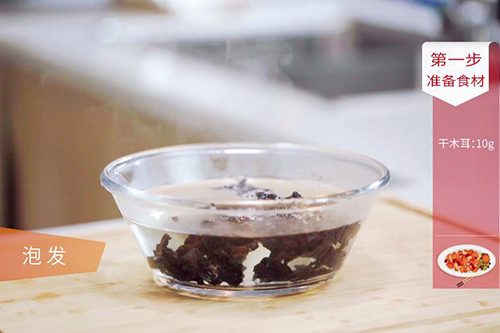1.木耳放入清水中泡发;