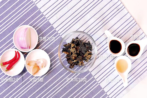 干木耳10克,洋葱20克;