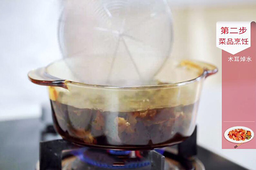 5.锅中放入适量清水,将泡好的木耳放入锅中;