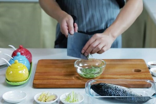 2、在鲫鱼表面轻轻划几刀即可,千万不要切太深了,否则影响鱼肉的口感;
