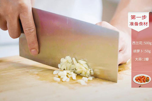 清炒西兰花的做法 西兰花怎么炒好吃西兰花洗净切小朵,胡萝卜切菱形片,大蒜切末;锅中水烧开,放西兰花焯水半分钟捞出备用;油锅烧至成热,放蒜末炒香,放胡萝卜炒至断生,放西兰花继续翻炒,放盐和鸡精调味即可。