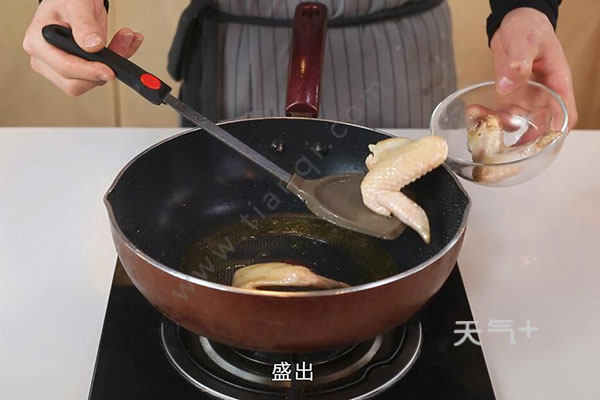 2.锅中放入适量油,油温烧至7成热,放入鸡翅小火煎至表面微焦,盛出。放入芋头小火煎至表面微焦,盛出待用;