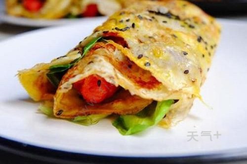煎饼果子基本上到了天津都会去尝尝,这是天津名小吃。天津人喜欢把煎饼果子作为早点吃,煎饼果子用的是绿豆面做面皮,里面加了各种食材,比如鸡蛋、油条、薄脆Dendi,然后裹起来,配上面酱、香菜和葱末即可,这种吃法简单,但是味道很好。