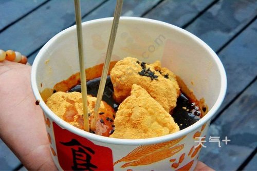 糖油果子是老成都人的记忆,过去都是在街边销售的一种街头小吃,伴随了一代又一代的成都人长大,是成都人小时候的味道。糖油果子色泽黄亮,吃起来外酥内糯,香甜可口。糖油果子是用糯米制作而成,配上了红糖和芝麻,糯米粉团在油中炸过之后,加上了白芝麻,然后用竹签穿起来吃。