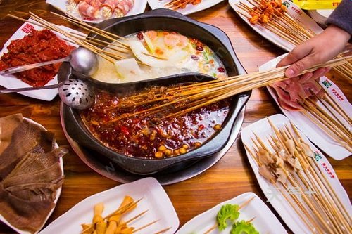 四川钵钵鸡是成都本地人都非常喜欢的一道美食,钵钵是四川话,其实就是瓦罐的意思,瓦罐看起来十分精致,外面画着红黄相间的瓷质龙纹,钵内放着各种麻辣鲜香的串品,菜品的种类很丰富,有荤有素,顾客可以自己挑选,自取自食,最后根据你吃了多少签子计算费用。