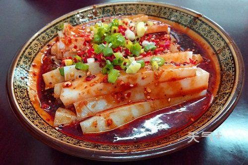 伤心凉粉是宽窄巷子的最火爆的小吃之一,很多外地人听到这种说法,会觉得很奇怪,其实这是因为伤心凉粉很辣,吃的人会被辣的流眼泪,所以得名。伤心凉粉吃起来爽口滑嫩,配上丰富的佐料之后,更加凸显味道的鲜香,凉粉色泽鲜亮,一看就会非常想吃,可是不是谁都受得住这种辣的。