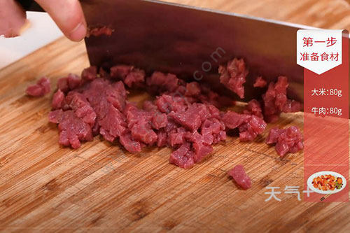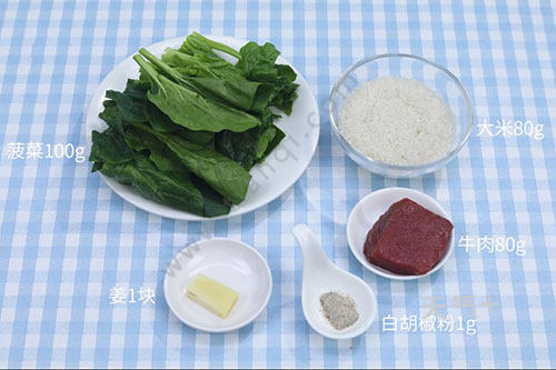 牛肉80克,菠菜100克,大米80克;