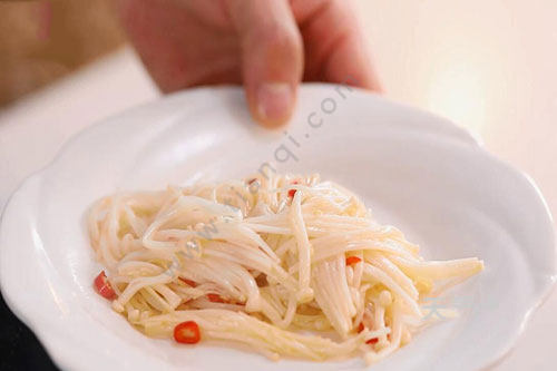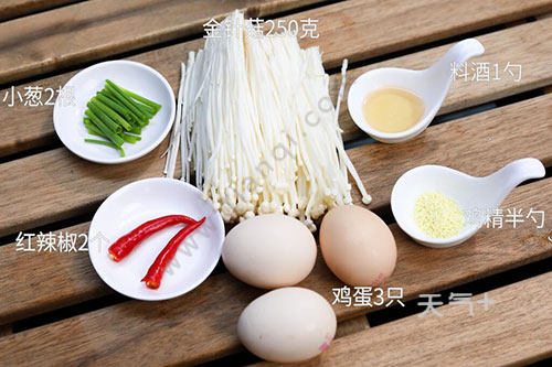 金针菇炒蛋的做法 金针菇炒蛋怎么做的金针菇洗净切掉头部,小葱切段,辣椒切小段,鸡蛋打在碗里,倒一点料酒,打散;3.锅内倒油,烧至七成熟,倒金针菇和辣椒翻炒至断生盛出。锅洗净倒油,八成热倒入打好的鸡蛋,煎至七八成熟,倒入金针菇一起翻炒,起锅时,放葱段,加盐和鸡精炒匀即可。