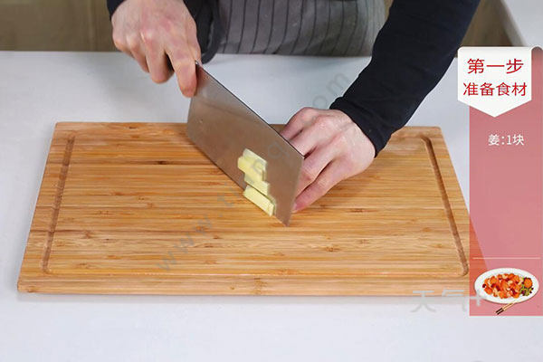 1.姜切片,香菜切段。