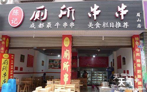 厕所串串香可以说是成都当地非常有名的店到了,开店之初位置偏僻,也没有像模像样的招牌。食客为了方便寻找,就以店铺旁边得公共厕所为地标,称“厕所串串”。老板为了迎合大伙的喜爱,就正式挂起了“厕所串串香”的招牌。