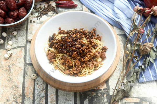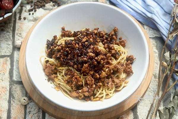4.放入适量面条煮熟,捞出甩干水分,盛入碗中拌匀。放上炒好的肉末即可。