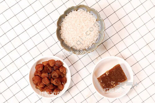 大米洗净浸泡30分钟,桂圆清水中浸泡5分钟,红枣6颗对半切开;清水大火烧开,放大米煮开后,放桂圆转小火熬煮20分钟,期间不定时搅拌;最后放红枣、红糖拌匀后继续煮10分钟即可。