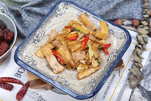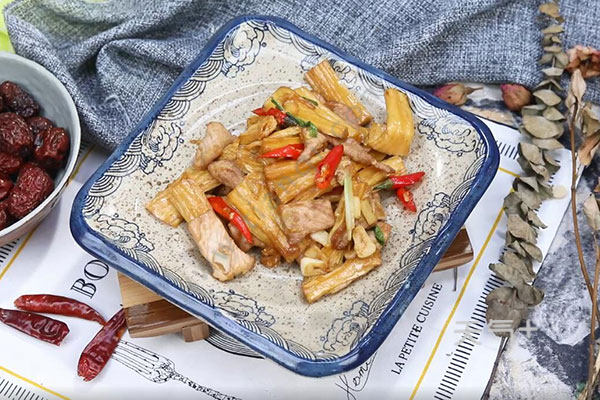 腐竹色泽黄白,油光透亮,含有丰富的蛋白质及多种营养成分,可荤、素、烧、炒、凉拌、汤食等,食之清香爽口,荤、素食别有风味。腐竹炒肉属于粤菜,色香味俱全。腐竹炒肉怎么炒 腐竹炒肉的正宗做法