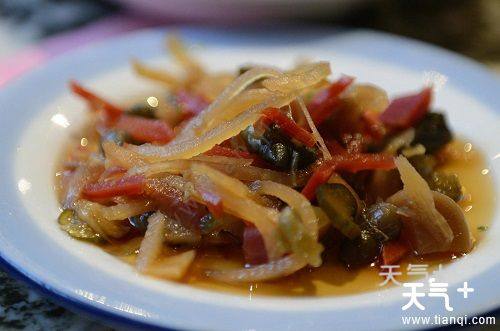 扬州酱菜是有名的江苏特色小吃。扬州酱菜中最有名的是扬州三和四美酱菜。“三和”是生产者希望创业者之间能像松竹梅岁寒三友一样团结协作;“四美”是指人生四件享乐之事,即良辰、美景、赏心、乐事。扬州酱菜块型美观、色泽明亮、酱香浓郁、鲜甜脆嫩,有乳黄瓜、萝卜头、嫩生姜、什锦菜等数十个品种。现在在超市中都能买到。