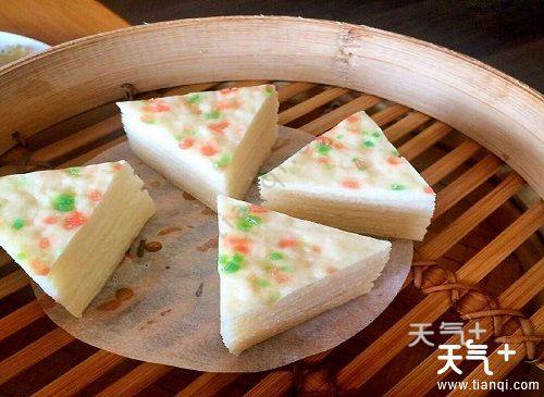 千层油糕是扬州名吃,绵软甜嫩,层次清晰。 菱形块,芙蓉色,半透明,糕分64层,层层糖油相间,甜腻适口。至今已有近百年历史,扬州名厨创于光绪年间,传承了千层馒头的技艺并加以改进,采用清肥慢长的起酵方法,油、糖、面擀制分层均匀,避免过量粮油。千层油糕与翡翠烧卖并称面点中的“扬州双绝”。