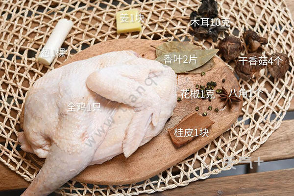 干香菇4个,木耳10克,全鸡1只;