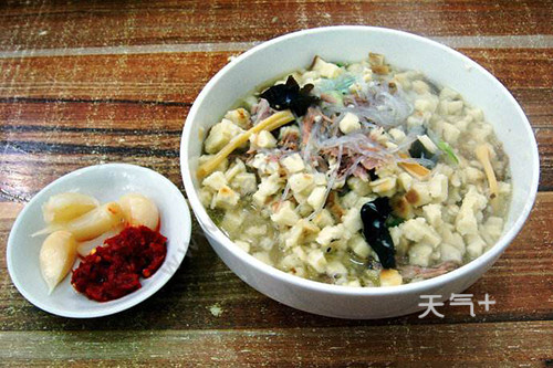 葫芦头在陕西地区很常见,也是当地人都喜欢的一道小吃,因猪大肠油脂厚,外观看起来像葫芦,所以取名叫葫芦头。葫芦头历史悠久,吃的时候将馍掰碎,再把猪肠肚和海参、鱿鱼等食材放在馍块上,葫芦头的汤头是大骨汤,加上糖蒜、辣酱等佐料,肥而不腻,是很好的滋补美食。