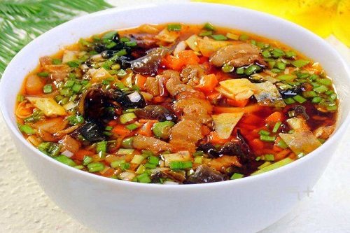 肉丸胡辣汤是西安地区的特色小吃,一般西安人喜欢早餐的时候来一碗肉丸胡辣汤。肉丸胡辣汤其实简单说就是蔬菜牛肉丸子汤,只是有一点不同,就是汤要勾芡。肉丸胡辣汤的特点是汤料非常粘稠,口感很好,吃起来是香辣口味,可以单独吃,也可以配上其他的一些早点。
