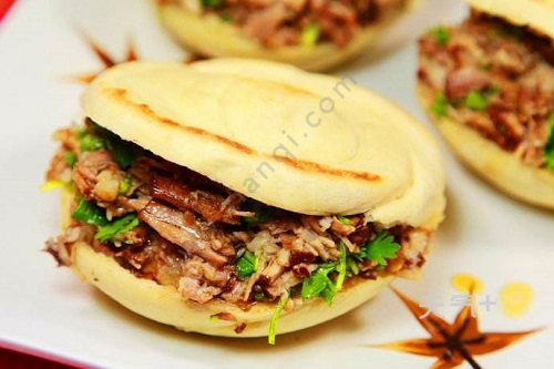 肉夹馍是最具有人气的西安特色小吃之一,肉夹馍价格实惠,但是口感丰富,成为了西安人最爱的味道。地道的肉夹馍是腊汁肉,白吉馍的组合,外观呈金黄色,层次分明,内陷丰富,饼体膨胀,一口咬下去,外酥里嫩。陕西肉夹馍有很多种,宝鸡的肉臊子夹馍,还有潼关的潼关肉夹馍。