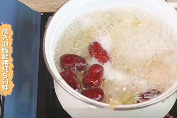 3.然后改中火炖30分钟,加入冰糖继续炖5分钟后,就可以盛出放凉,准备食用了。