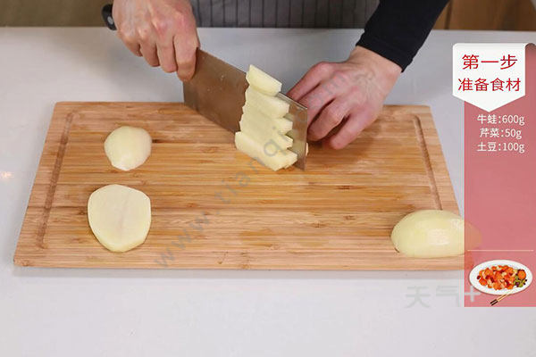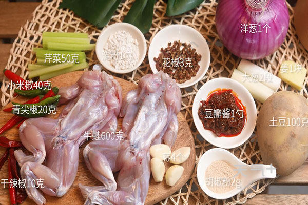 牛蛙600克,土豆100克,洋葱半个,芹菜50克;