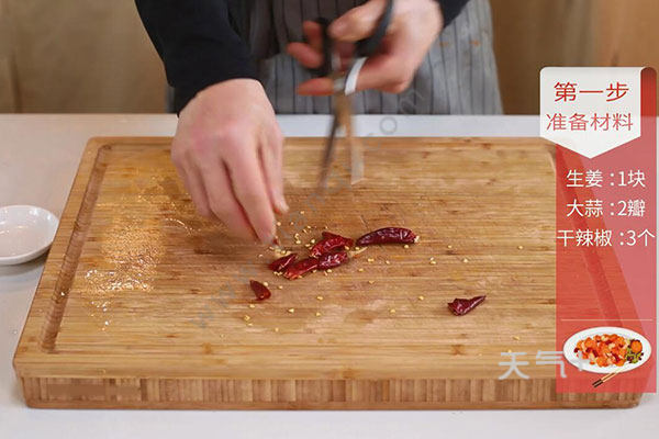 大蒜2瓣,姜1块,干辣椒3个,花椒1克,八角2个,香叶1片,桂皮1小块,茴香1克,冰糖5克,料酒2勺,老抽1勺,豆瓣酱1勺;