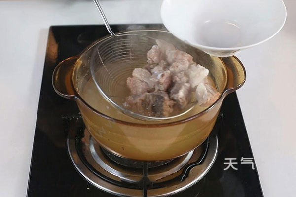 4.加入适量清水烧开(与排骨持平即可)炖20分钟;