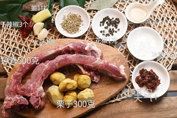 排骨500克,栗子300克;