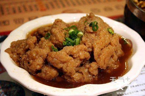 莲藕,再用大火蒸熟,肉汁的鲜香与土豆、莲藕的清爽很好融合在一起,最后用一个可以盛汤的盆将头碗翻过来,即土豆或莲耦在盆底,上面是酥肉,点缀一层青菜和熬汁,喷香四溢的扣碗酥肉就做成了。此道菜特点就是香酥、嫩滑、爽口、肥而不腻,不喜欢吃辣椒的朋友一定会喜欢的。
