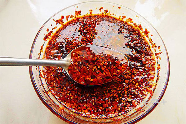 2、辣椒油里面加入几滴醋,能很好的提味;