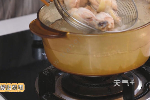 2.鸡翅根冷水下锅焯水1分钟,捞出待用。