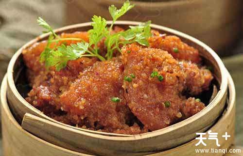 南昌人每年立夏前后都喜欢蒸上一碗米粉蒸肉,据说立夏日吃了不会生痱子。人们把大米加八角、桂皮等香料炒熟后研磨成粉,将五花肉切成厚片浸渍上辣椒油、酱油,再加白糖、料酒、味精等调味品,然后倒入米粉拌匀,再将粘满米粉的肉一片片叠在碗内,上笼蒸熟至烂,吃时将肉扣在盘内即可。