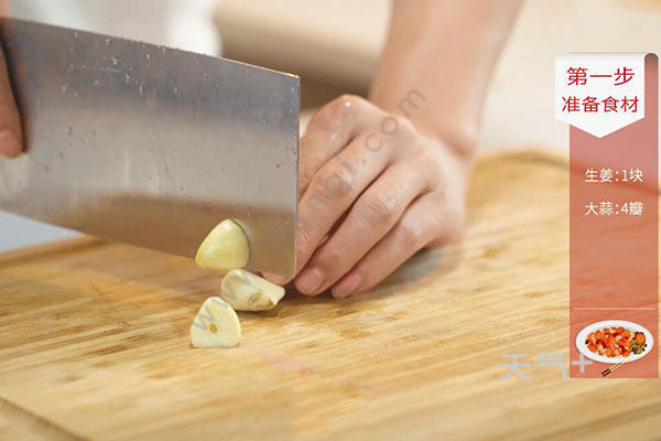 1.鸡肉块洗净,姜1块切片,蒜4瓣切粒,干辣椒5个剪成段;