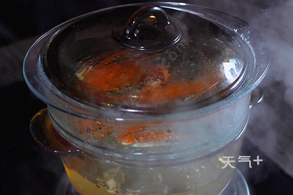 2.把洗净的梭子蟹放入蒸屉盖上锅盖,大火烧开锅中的水,水开后15分钟左右即可关火,梭子蟹盛盘。