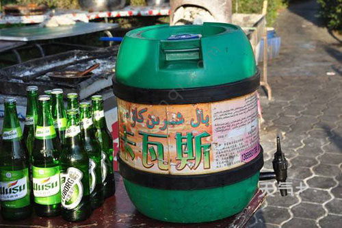 卡瓦斯是新疆的“土制啤酒”,也被称为“啤窝子”。卡瓦斯是以大麦(也有采用黑麦或荞麦)、玉米等谷物、山花蜜、啤酒花为原料发酵而成,其酒精含量仅0.3-0.5%,类似啤酒。卡瓦斯口感好、营养丰富,适宜饮用。常喝卡瓦斯,可补充人体不可缺少的多种维生素,有效促进人体的消化功能。