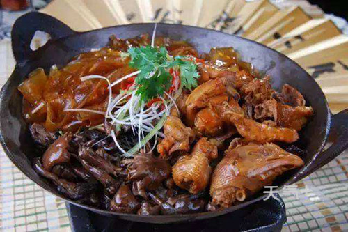 喜欢吃东北菜的小伙伴,应该都知道小鸡炖蘑菇,这道菜是东北八大炖之一,小鸡炖蘑菇想要好吃,最重要的就是选材,那些吃小虫和野菜长大的柴鸡最好,更加的健康营养,味道更浓香,蘑菇一定要是东北特产野生榛蘑。小鸡炖蘑菇在通化很多的餐厅都能吃,具有抗癌功效,并且是东北人最喜欢的冬季养生菜之一。