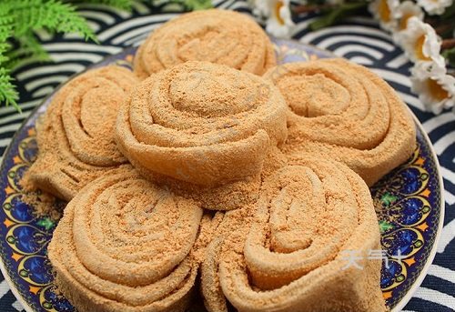 豆面卷子是满族的传统面食,也被称为豆面饽饽。一般是满族人祭祀的时候的贡品,豆面卷子采用的黄米作为原材料,浸泡后磨成黄米面,擀成薄皮,上锅蒸,然后将黄豆炒熟之后磨成面,撒在黄米面上面,卷成2寸长的豆面卷,就可以上桌了,豆面卷子色泽金黄,吃起来香甜软糯。