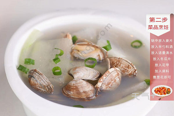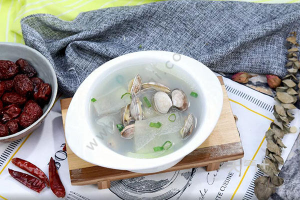 1、冬瓜可以清热解毒,利水消肿,是夏天很好的解暑食品.配上肥美的花甲,此汤不仅鲜甜, 还可以解暑消脂。