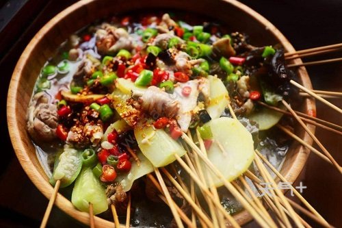 钵钵鸡是四川名小吃的代表了,也是川菜的一种,据说至今钵钵鸡已经有上百年的历史了。钵钵鸡在成都的大街小巷都可以看到,麻辣爽口,非常符合四川人的口味。“钵钵”是一种瓦罐,钵内装上佐料,食材经过加工后串起来放在里面,顾客可以自己挑选要吃的食材,口味多样、做法独特。