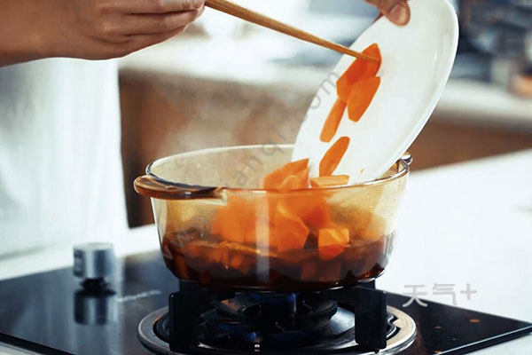 1.胡萝卜红烧肉是在炖好的五花肉中加入适量胡萝卜,然后继续闷煮25分钟;